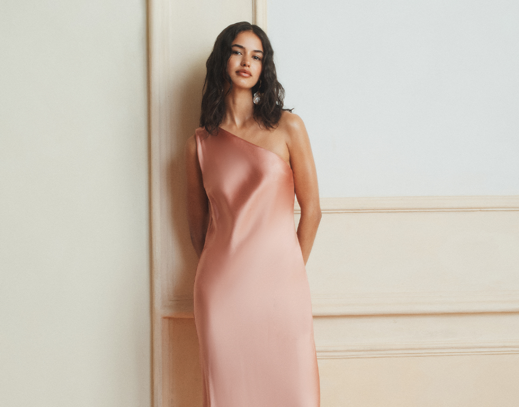 Des lignes qui exaltent la silhouette dans un équilibre naturel et étudié, avec des robes en crêpe, satin et satin de soie